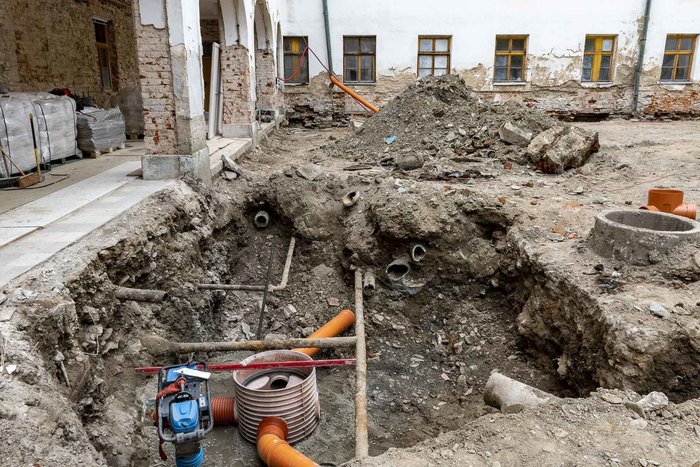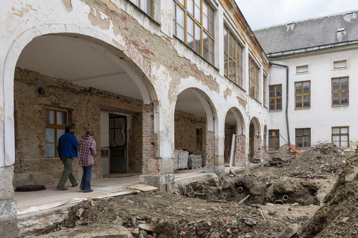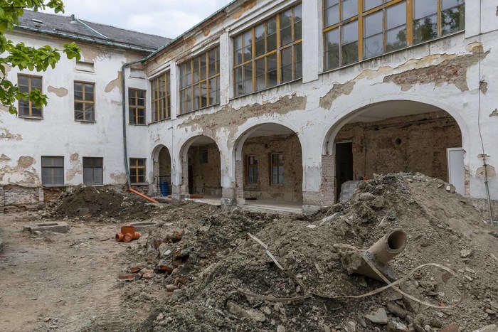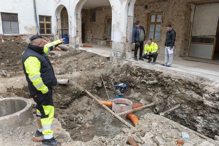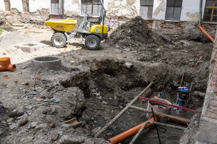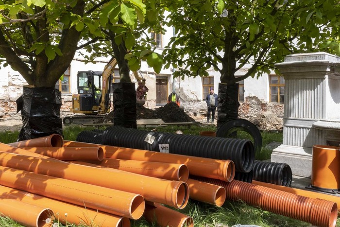 V dubnu 2025 byla zahájena dlouho očekávaná realizace první etapy plánovaných prací na obnově a rekonstrukci našeho zámku pod názvem „Zámek Jindřichov – zpevněné plochy nádvoří“. Od té doby snad nenastal jediný den, kdy by pracovníci dodavatelské firmy Bitumenbau s.r.o. Ostrava na nádvoří nepracovali. Ve výčtu projektovaných prací, kdy již dříve byly odstraněny skleněné výplně z oblouků ambitové chodby včetně části poškozených omítek, jsou v současné době především prováděny výkopové práce na zámeckém nádvoří.