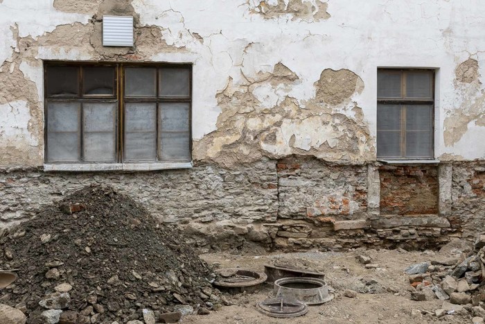 Po nivelaci a uložení nové kanalizace, zabudování izolační vrstvy proti vzlínání vlhkosti do obvodových stěn, instalaci retenčního zařízení pro vsakování dešťových vod dojde k rekonstrukci zpevněných ploch a okapových chodníků.