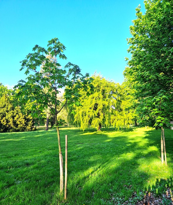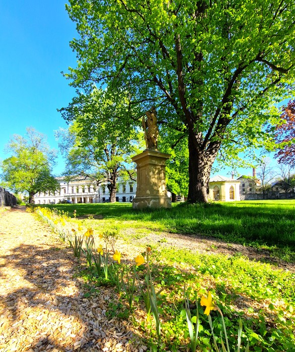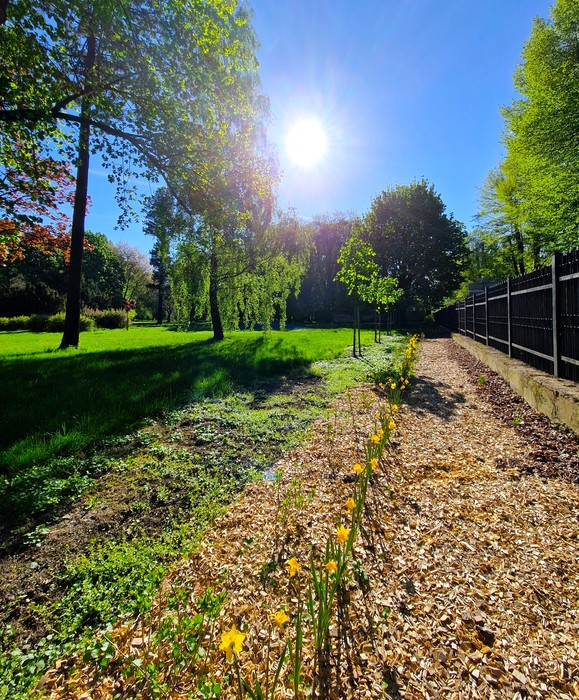 Staré keře byly vykáceny a na jejich místo byly vysázeny narcisy, které prosvítily svěží zeleň svými jasně žlutými květy. Za narcisy se již derou na slunce výhony pivoněk, které nás v květnu potěší svými nádhernými květy, aby posléze předaly kvetoucí štafetu vznešeným hortenziím.