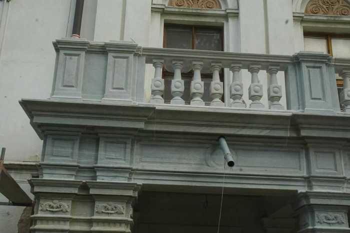 Celá konstrukce zábradlí balkonu byla už před několika lety demontována a uložena na nádvoří, samotný balkon byl provizorně zakryt lepenkovým krytem. Během současné opravy byly odstraněny narušené omítkové vrstvy a po konzultaci se statikem byl navrženo vyztužení celého obvodu balkonu i svrchní plochy. Kovové nosníky byly zbaveny koroze, byly provedeny speciální nátěry a cihelné plochy byly vyčištěny a všechna odstraněná a poškozená místa byla vyzděna. Mezitím byly všechny zdemontované mramorové a kamenné díly balkonu očištěny a restaurovány restaurátorem MgA. Jakubem Gajdou. Po všech potřebných pracech na konstrukci balkonu byly mramorové a kamenné díly (čela balkonu, římsy, sloupky a kuželky balustrády a kamenná madla) sestaveny zpět do své původní podoby. Menší defekty byly doplněny a modelovány minerálním tmelem a mramorovou drtí. Nakonec bylo provedeno spárování probarvenou flexibilní spárovací hmotou.